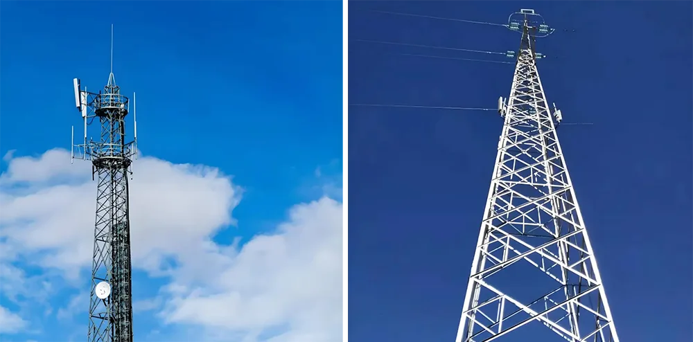 अँगल स्टील टॉवर्स: एकसमान वितरित ग्रिड-सदृश ट्रस संरचना वैशिष्ट्यीकृत, हे टॉवर मजबूत भार सहन करण्याची क्षमता देतात. ते एकाच वेळी अँटेना आणि मायक्रोवेव्ह ट्रान्समिशन उपकरणांच्या अनेक संचांना सपोर्ट करू शकतात, ज्यामुळे ते विशेषतः उपनगरे आणि पर्वतीय प्रदेशांसारख्या खुल्या भागांसाठी योग्य बनतात जेथे उच्च-क्षमतेचे संप्रेषण भार आवश्यक असतात.