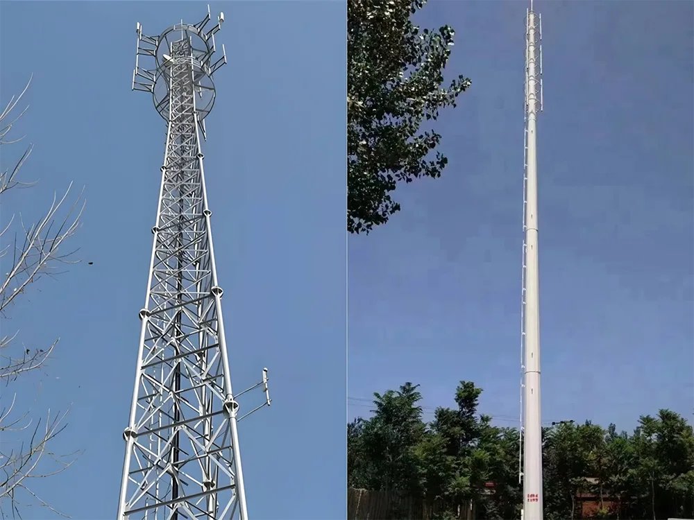 मोनोपोल टॉवर्स: एक दंडगोलाकार टॉवर बॉडी असलेले, हे टॉवर कमी वाऱ्याचा प्रतिकार, एक साधे आणि स्वच्छ स्वरूप आणि एक लहान पाऊल ठसा द्वारे वैशिष्ट्यीकृत आहेत. ते सामान्यतः शहरी केंद्रे आणि निसर्गरम्य भागात वापरले जातात जेथे सौंदर्याचा विचार महत्त्वाचा असतो.
